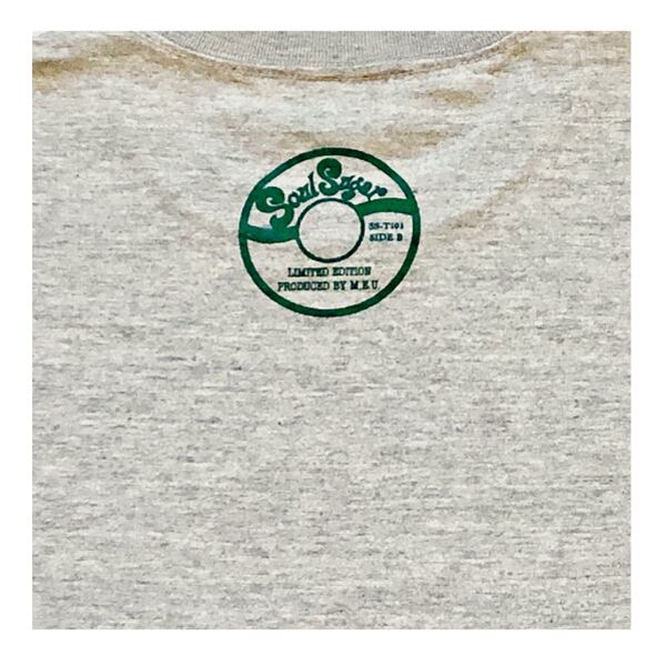 ●フロントのオリジナルイラストとロゴのプリントカラーはダークグリーン。バックプリントは7インチシングル盤センターラベルをイメージしたロゴ。