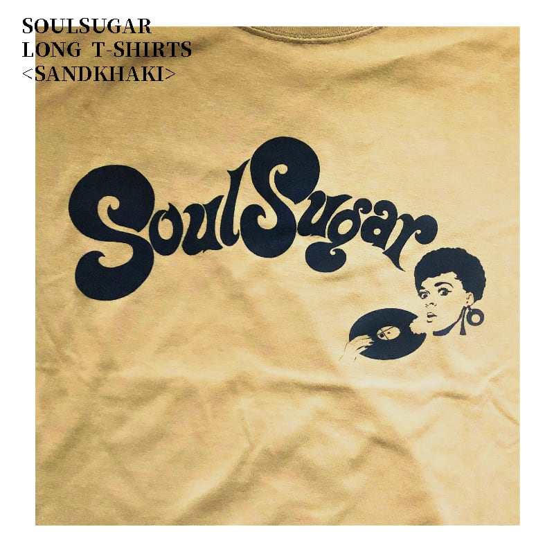 SOULSUGARオリジナルブランドロゴ:VINYL GIRLをプリントしたロング袖Tシャツです。プリントカラーは濃いネイビー。ボディはコットン100%、5.6オンス。しっかりとした厚みがある生地で、Tシャツとしての耐久性も申し分なしです。