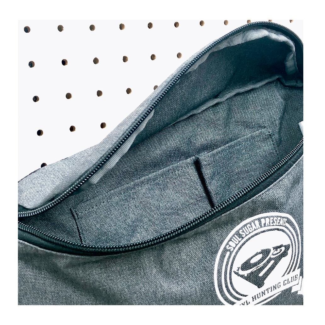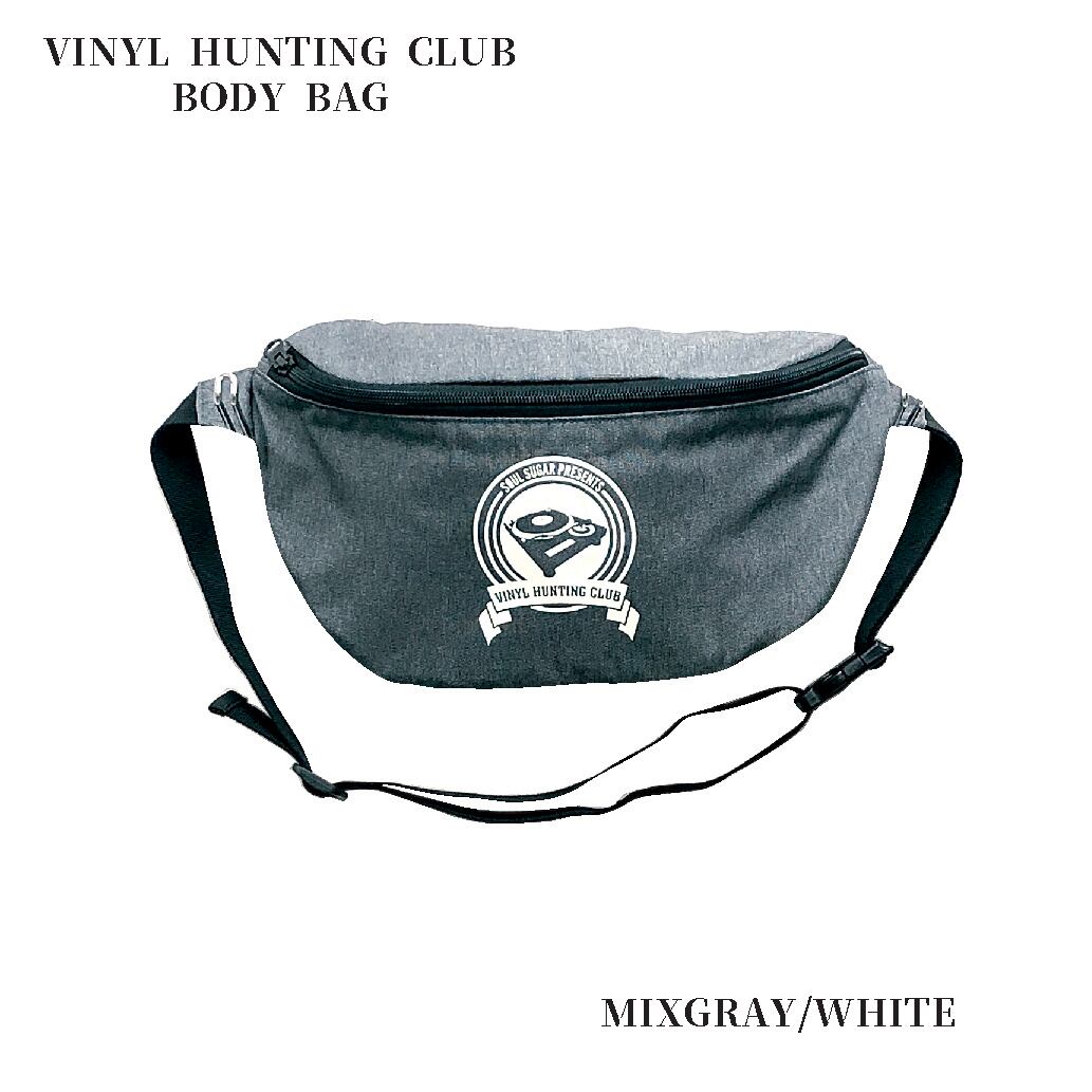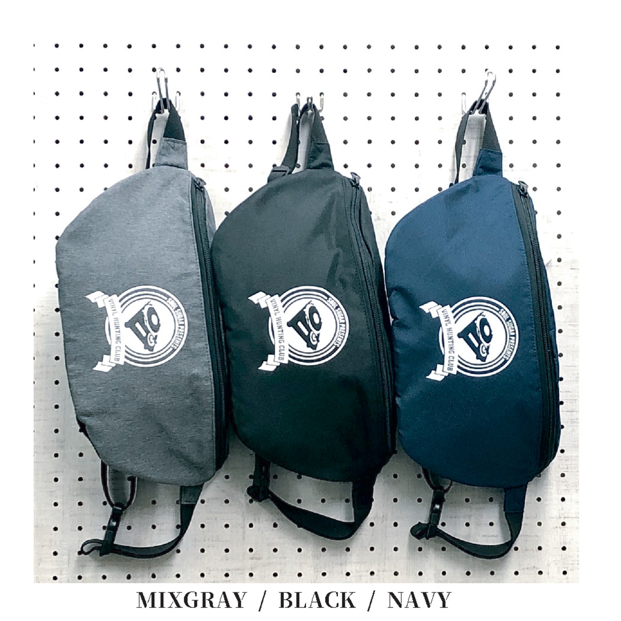 再入荷いたしました!MeuオリジナルのNEW LINE/VINYL HUNTING CLUBのボディバック。撥水処理済の600Dポリエステル生地にシルクスクリーンでVHCロゴをプリント。サイズは高さ19、奥行最大9、底幅31㎝で約9リットルの収納容量があります。ショルダーテープの長さ調整範囲は93㎝まで。2つの内ポケット付き。スマホ、お財布、ハンカチ等の携帯必需品を持ち運ぶにはジャストな大きさと軽さです。こちらのカラーはミックスグレイになります。