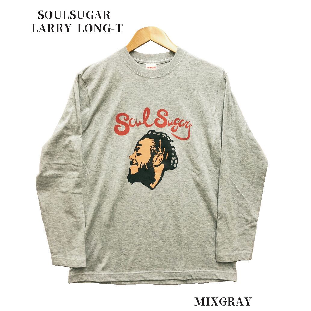 SOULSUGARはブラック・ミュージックにインスパイアされたデザインをメインに展開するzakka shop Meuのオリジナル・ブランド。RARE GROOVE系のDJならば御馴染みのレコードジャケットを基にデザインした3色シルクスクリーン印刷のLARRYロングTシャツが登場。5.6オンス、コットン100%のボディでカラーは3色。こちらは着回し抜群のミックスグレイ。サイズはM/L/XL。各サイズは以下