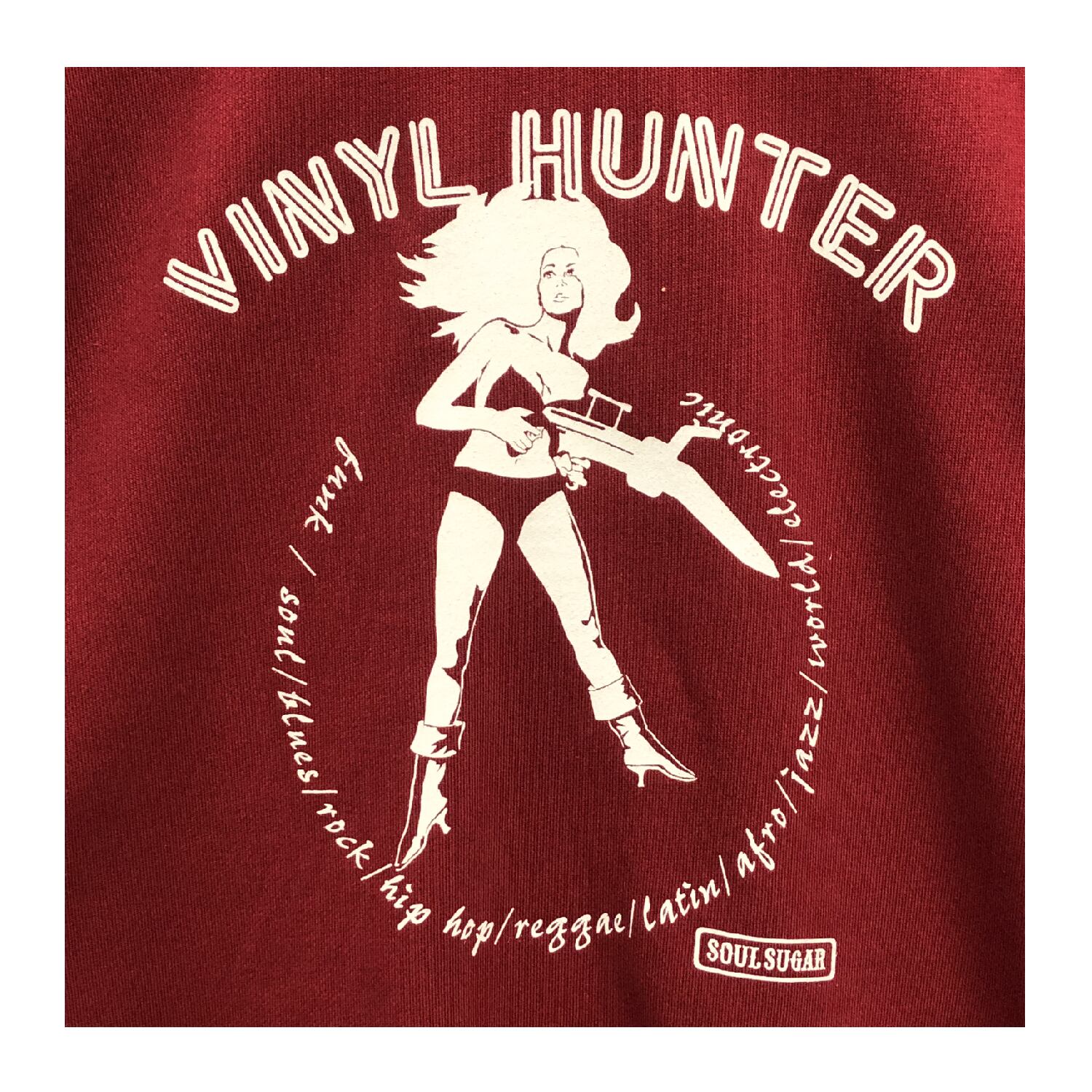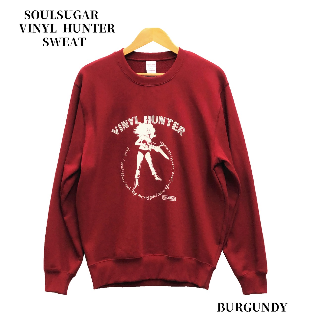 SOULSUGARはブラック・ミュージックにインスパイアされたデザインをメインに展開するzakka shop Meuのオリジナル・ブランドです。2024年新作のスウェットはカルトSF映画のヒロインにアナログ・カートリッジ風な銃を持たせたイラストをプリントしました! ボディは裏パイル スウェットを使用。厚みのある耐久性のしっかりとした10.0オンス 、100%コットン生地で、毛玉が出来にくく長くお使いいただけます。ボディカラーは2色で、こちらは秋冬のファッションに映えるバーガンディー。サイズはM/L/XLの展開となっております。